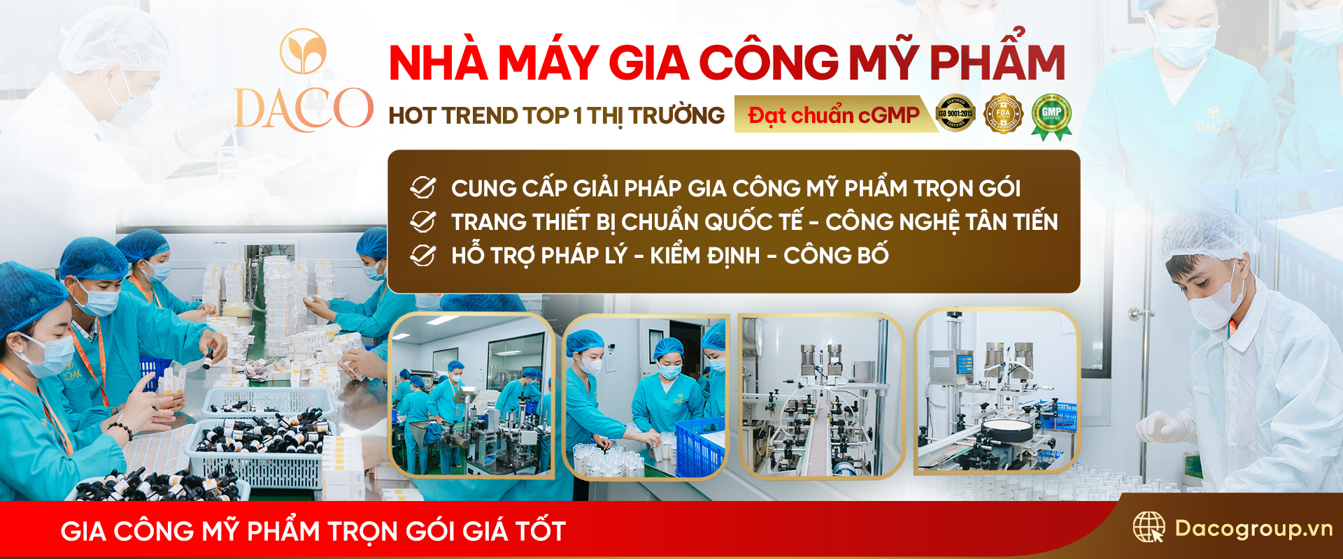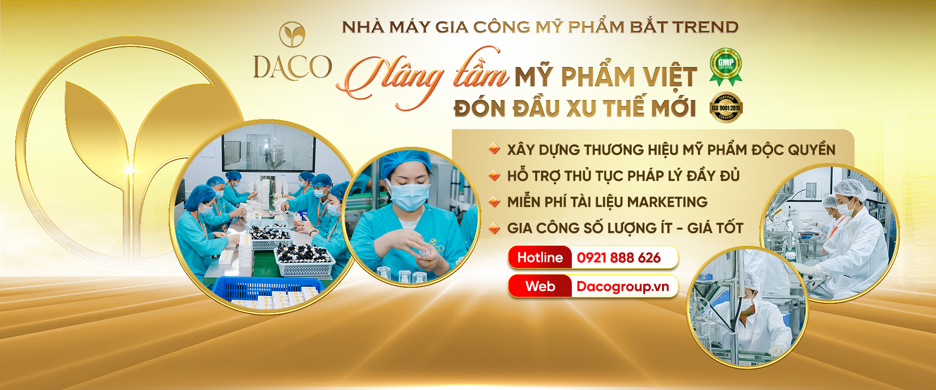 Nhà máy sản xuất mỹ phẩm DACO được công nhận đạt chuẩn cGMP và luôn nằm trong top đầu các nhà máy gia công chất lượng cao trên thị trường. Chúng tôi hướng đến các dòng mỹ phẩm dưỡng da và đặc trị chuyên sâu với mục tiêu mang đến sản phẩm có tính hiệu quả cao và an toàn tuyệt đối cho da.